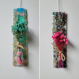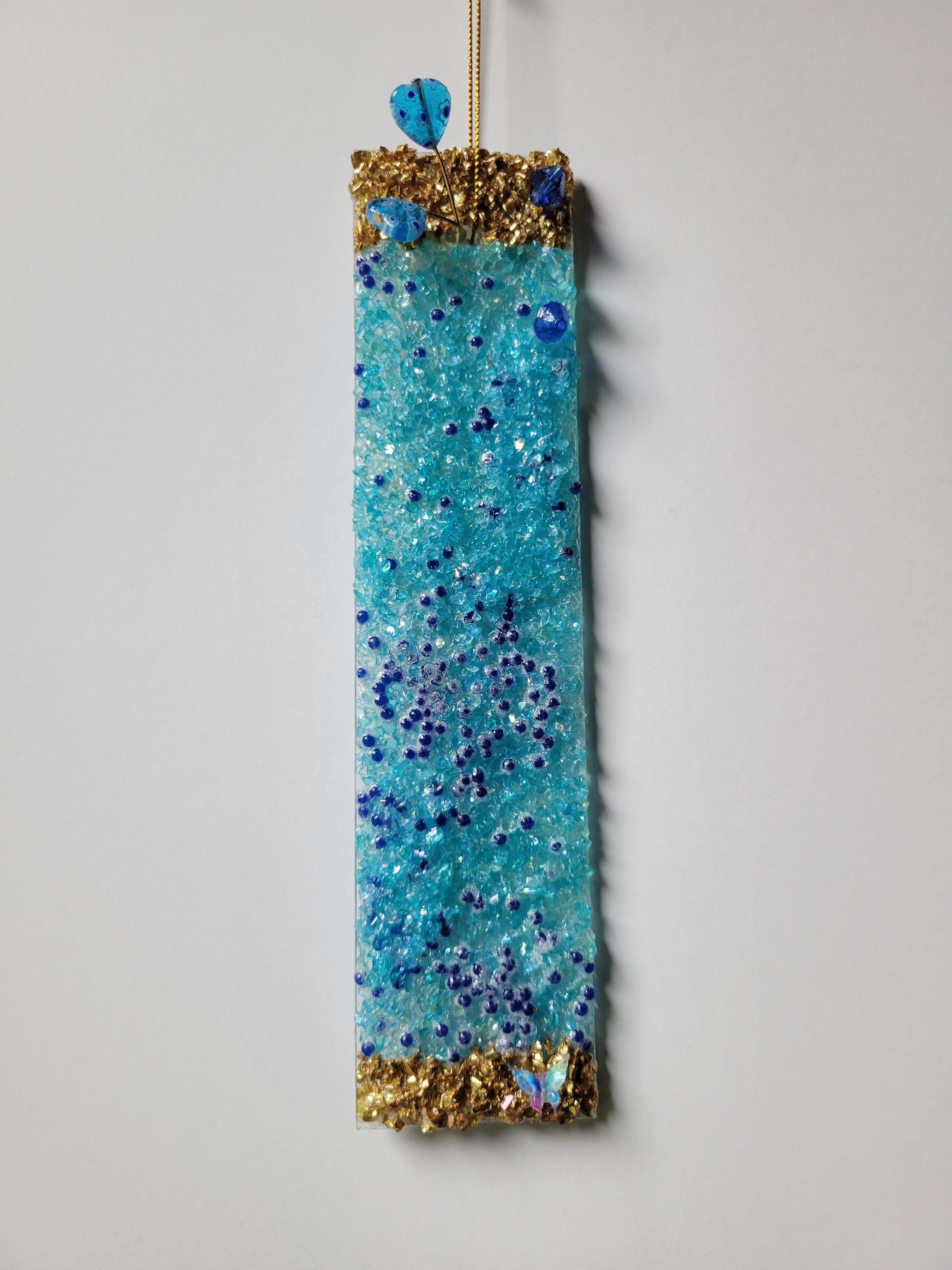 Repurposed chandelier glass with sequins, mosaics, glass glitter and beads. Beautiful as a suncatcher but can be hung anywhere. Comes with hanger. Available in assorted colors as seen in photo.