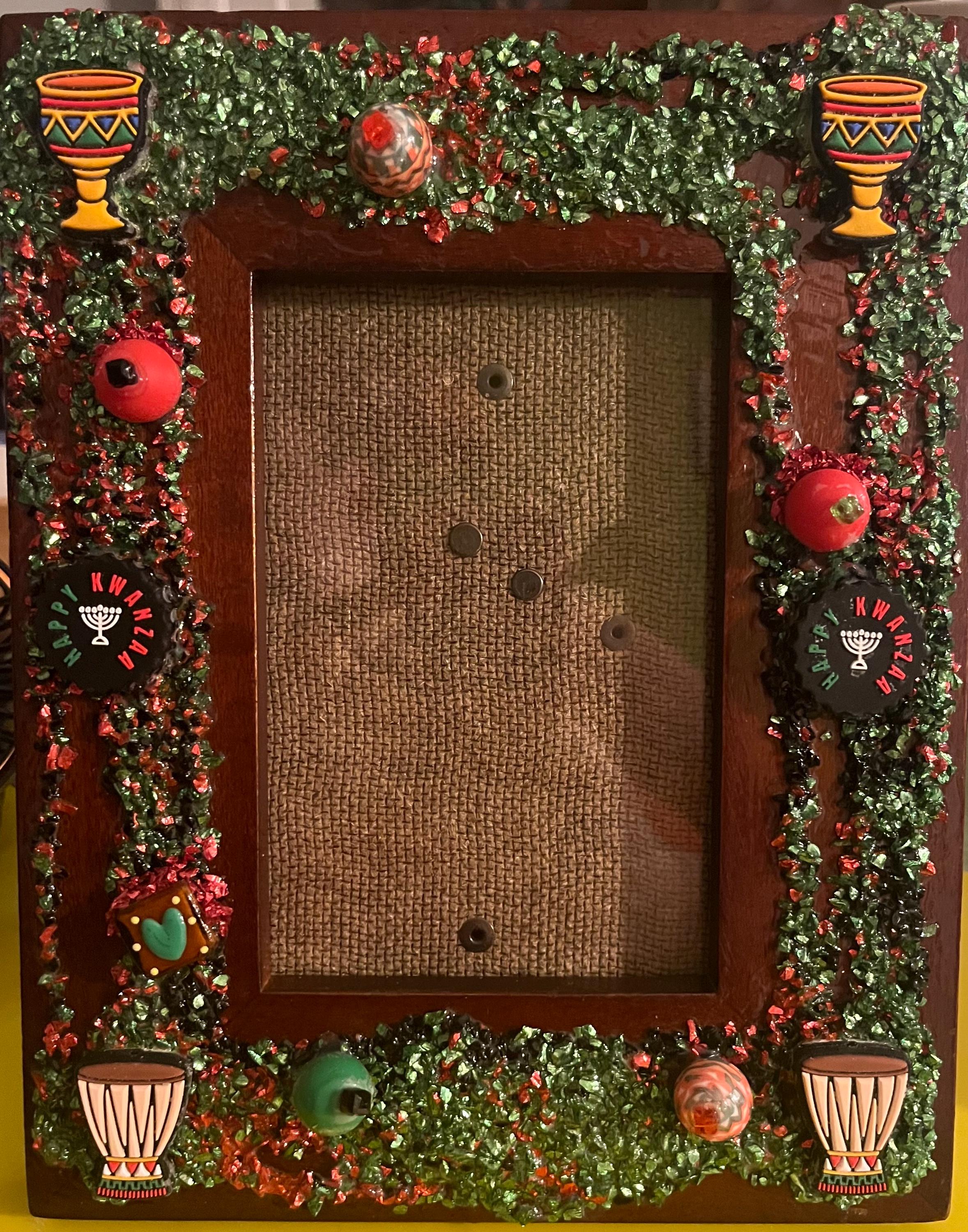 Kwanza Inspired Picture Frame, Crushed Glass & Resin Adorned